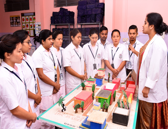 The Community health nursing lab plays a pivotal role in preparing students to compete to render quality services to individual, family, and community. The lab is well equipped and has a stimulating environment of learning. Community bag, maternity kit for screening tests, enables students to practice skills in lab and community. The audio-visual section of the lab has attractive learning aids across various topics of relevance. The charts, flashcards, flipcharts, models are well organized for student use. Every student gets the opportunity to update this section during their course. Community Health nursing bag, developed by our community health nursing department is the hallmark of this lab