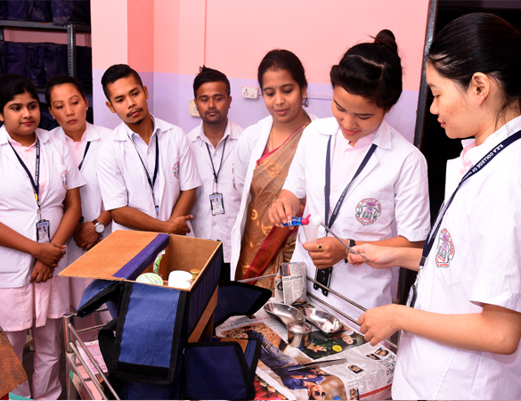 The Community health nursing lab plays a pivotal role in preparing students to compete to render quality services to individual, family, and community. The lab is well equipped and has a stimulating environment of learning. Community bag, maternity kit for screening tests, enables students to practice skills in lab and community. The audio-visual section of the lab has attractive learning aids across various topics of relevance. The charts, flashcards, flipcharts, models are well organized for student use. Every student gets the opportunity to update this section during their course. Community Health nursing bag, developed by our community health nursing department is the hallmark of this lab